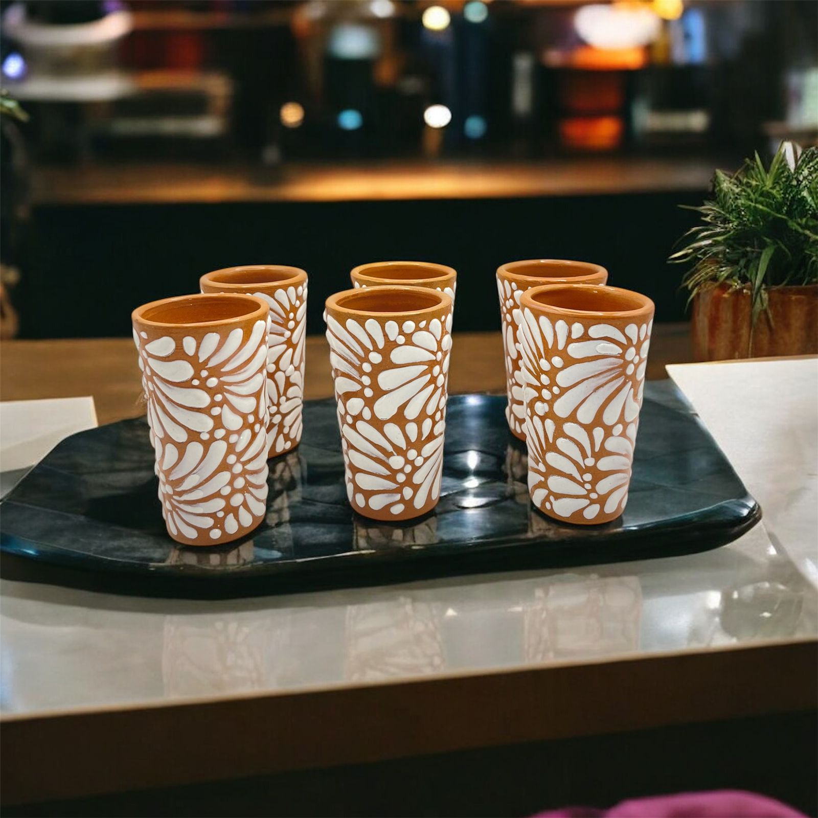 "Disfruta de tu tequila favorito en un tequilero artesanal de Talavera, lleno de autenticidad y tradición mexicana."